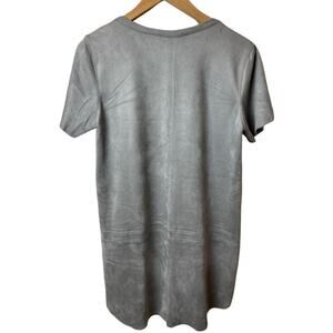 Olivaceous Gray Faux Suede Short Sleeve Minimalist Loose Fit Shift Dress Size M
