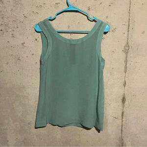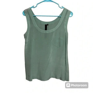Olivaceous Green Summer Silk Flowy Loose Tank Top Women Sz S
