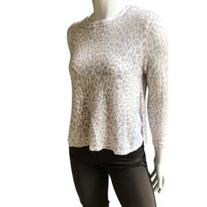 Olivaceous Layered Leopard Print Acrylic Nylon Wool Gray Long Sleeve Shirt Women's Size Small. Small snag (shown). Measurements: bust: 18, length: 20
