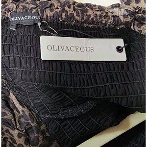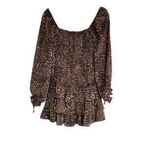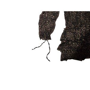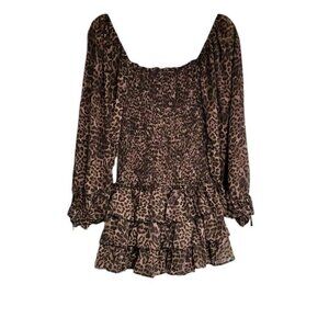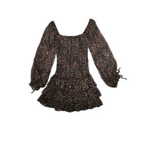 Olivaceous Leopard Print Ruffle Mini Dress Smocked Boho Black Brown Size Small