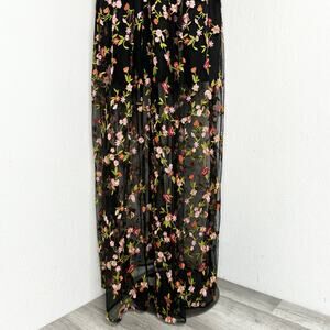 Olivaceous Long Black Floral Dress with Mesh Top Layer Size Small