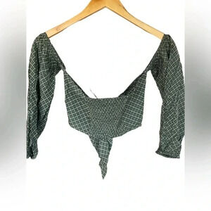 Olivaceous Off the Shoulder Cropped Tie Front Top in Green Size Small, Medium