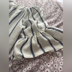 Chic off-shoulder design. Features elegant blue stripes. Perfect for casual outings.