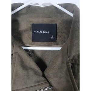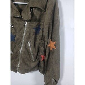 Olivaceous Olive Green Faux Suede Star Moto Jacket Size L EUC Zip Pockets Edgy