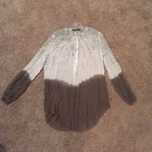 Very, very breezy (somewhat sheer) ombré blouse with two snap on buttons. Just doesn't fit me anymore!