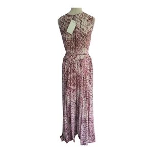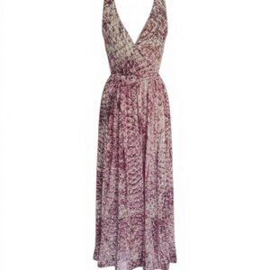 Olivaceous Pink Snake Print Sheer V-Neck Maxi Dress – Size M