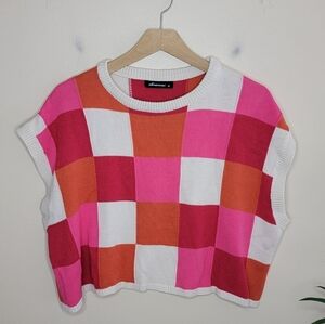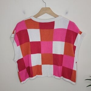 Olivaceous | Red Pink Orange Ivory Colorblock Square Sweater Vest Size Medium