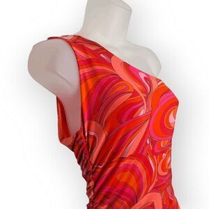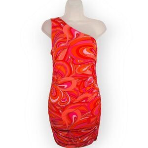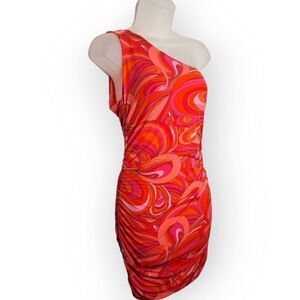 Olivaceous Retro Print One Shoulder Mini Dress size Large