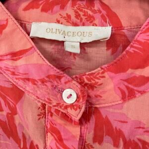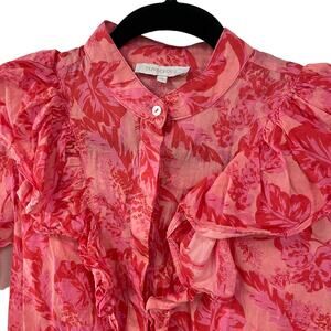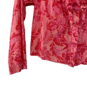 Olivaceous Ruffle Button Front Long Sleeve Red Pink Floral Top Women's Small