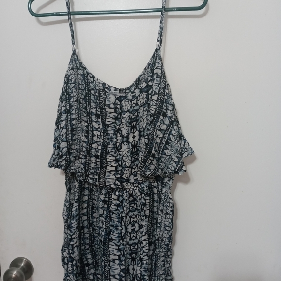 Olivaceous Sleeveless Adjustable Spaghetti Straps Romper with Ruffle layered Top..Star and Diamond Pattern. Navy Blue White Size Medium