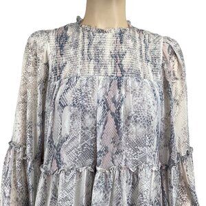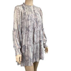 Olivaceous Snakeprint Tiered Smocked Mini Dress Size Small Long Sleeve
