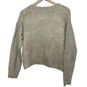 Olivaceous Tan Cable Knit Pom Pom Sweater Size Small