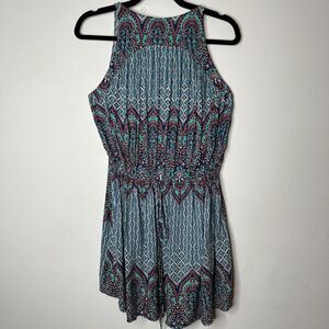 Olivaceous Teal Pink Multi Color Paisley Sleeveless Mini Dress V-Tie Front