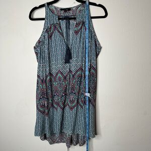 Olivaceous Teal Pink Multi Color Paisley Sleeveless Flowy Mini Tie VFront Small