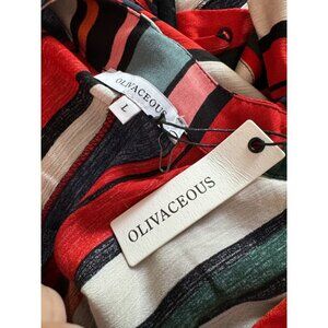 Olivaceous V Neck Tie Size Large Rayon Blouse Striped Anthropologie Blouse Top