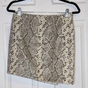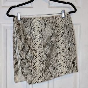 Olivaceous Vanilla Sky Tan & Brown Asymmetrical Snake Print Skirt M
