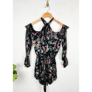 Olivaceous Velvet Textured Floral Cold Shoulder Romper Sz M
