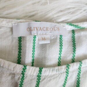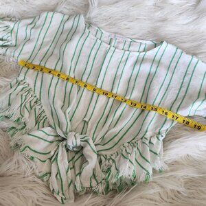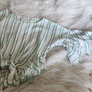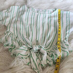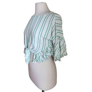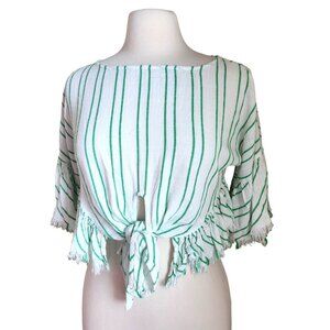 Olivaceous Women Size M Cropped Top Tie Front Stripe Fringe Boho Bell Sleeves