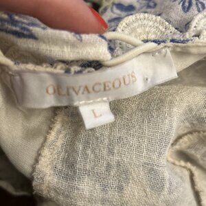 Olivaceous Womens Coquette Top Large Crop Floral Linen Cottagecore Milkmaid