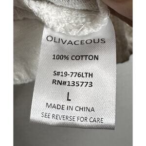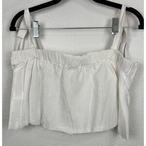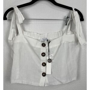 Olivaceous Women’s Ivory Button Front Raw Hem Sleeveless Tie Crop Top Large NWT