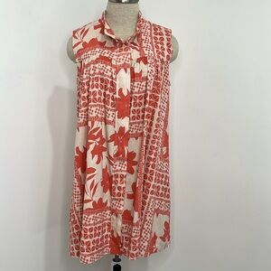 A-Line Shirt Dress Floral Orange Cream Sleeveless Size Medium
