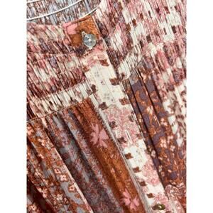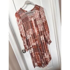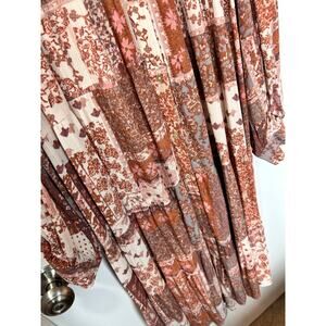 Olivaceous Women's Patchwork Tiered Midi Dress Boho Earthy Rust Beige Size Large