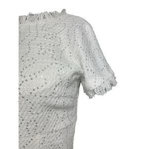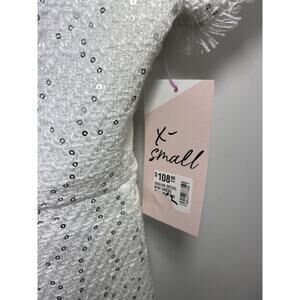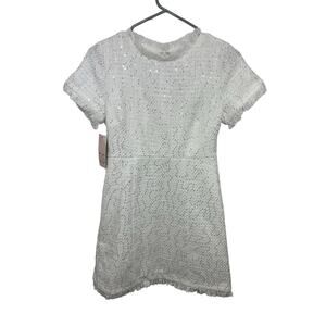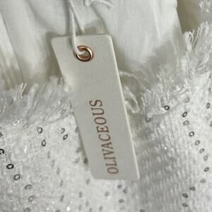 Olivaceous Women’s Sleeveless White Sequin Zipper Lined Dress Small Fringe NWT
