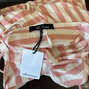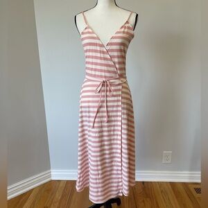 Olivaceous true wrap dress in a size large with stripes and spaghetti straps new with tags.