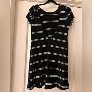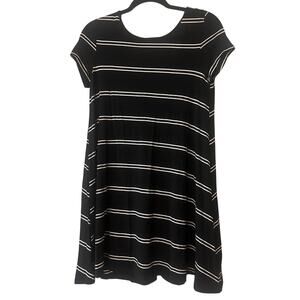 Olivaceous black and white striped scoop back mini tee shirt ss dress in medium
