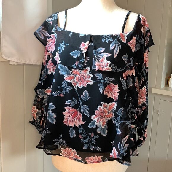 Olivaceous cold shoulder sheer ruffle blouse sz small