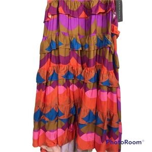 Olivaceous colorful tent style ruffle tiered dress size S NWT