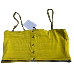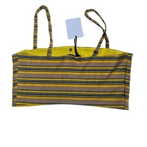 Olivaceous crop top tank top lined ribbed knit stripped taupe yellow size medium
