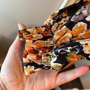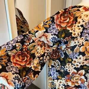 black background with floral pattern with reds, gold, purple , green, and orange colors (perfect for Fall)