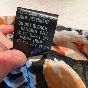 Olivaceous floral 100% cotton peasant blouse w tassels, Size Medium