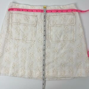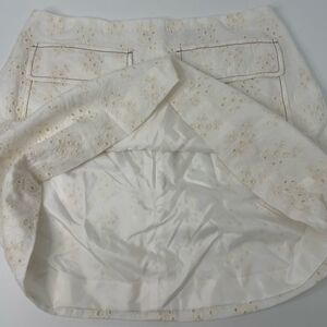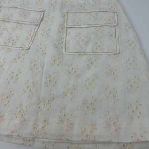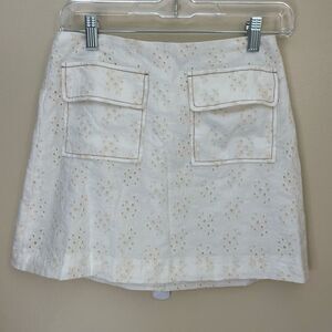 Super cute floral Embroidered mini skirt, has a silky lining on inside, with two front pockets and discrete zipper in back.