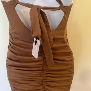 Olivaceous Mocha Ruched Bodycon Cutout Mini Dress (M)