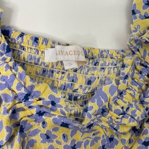 Does not have fabric tag but feels like really good quality 100% rayon top.