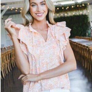 Olivacious LIKE NEW Athena ruffle sleeve pleated feminine tassel blouse M