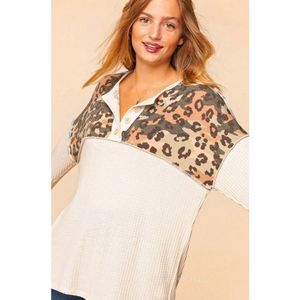 Olive And Oatmeal Camo Animal Print Button Down Top
