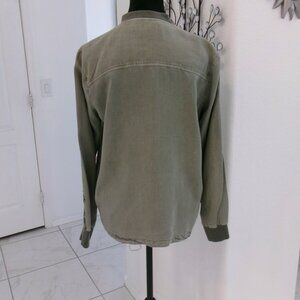 Olive Army Green Boho Embroidered Lightweight Jacket Zip Front Pockets M Love 8