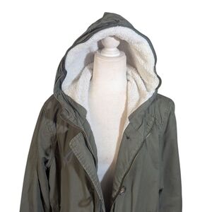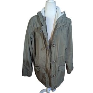 Olive Army Green Hooded Jacket Fleece Sherpa Lined Plus Sz 2x