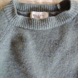 Olive Blue Unbalanced Crew Neck Wool Blend Sweater M/L