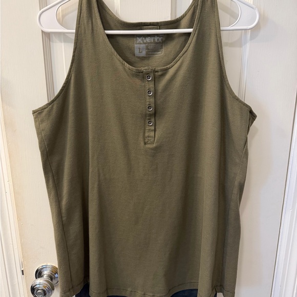 Functional olive tank top with a classic button-front design. Perfect for everyday wear.