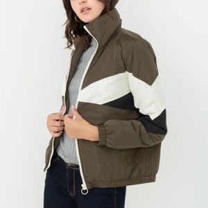 Olive Color-blocked Puffer Jacket