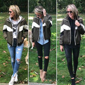 Its pretty lightweight, so its a great transitional piece. HOW IT FITS: This runs true to size, but if you want it a little longer, I would size up. Fabric Contents: 100% Polyester