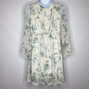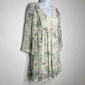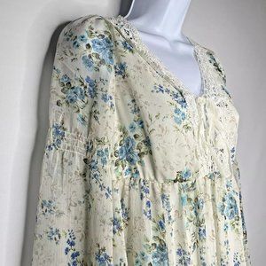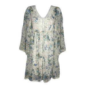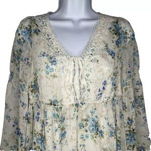 Olive Des Olive Sheer Ivory White Blue Floral Overlay 3/4 Bell Sleeve Mi…