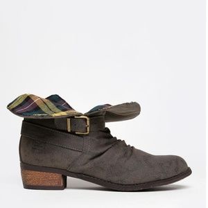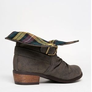 Olive Flannel Lined Distressed Motorcycle Boots