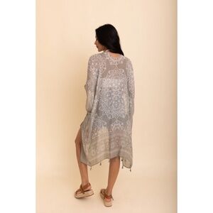 Olive Gray Mandala Printed Tassel Open Kimono Coverup Casual Wrap One Size