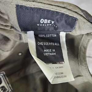 Olive Green Army Color Obey Camo Camouflage Trucker Hat Cap Snapback Hat. The hat isn't very tall. Has a stain.