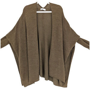 Olive Green Asymmetric Lagenlook Cape Cardigan Wrap Sweater Boho Minimalist XS